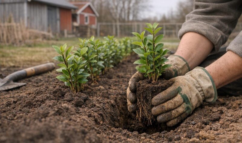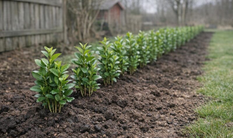 För att få en tät och välgrenad häck kan du klippa ner plantorna till cirka 20 cm över marken, antingen direkt vid plantering eller under den första våren. Vattna regelbundet under det första året och extra under torra perioder. Ett lager gräsklipp runt plantorna kan hjälpa till att bevara fukten och hålla ogräset borta. Genom rätt plantering och omsorg ger du din häck de bästa förutsättningarna för att växa och frodas under många år framöver.